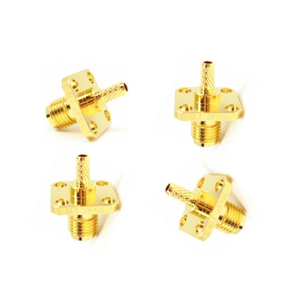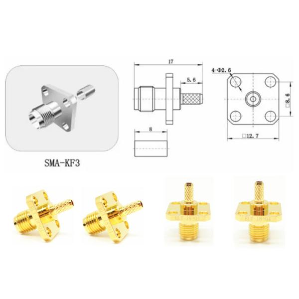 50Ohm Female SMA RF Connector Solder Attachment 4 Holes Flange Mounting Images |
